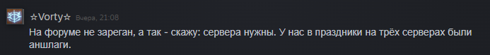 На 25 лет обновление я просил помощь у He||oween. Он там писал (для меня загадками т.е вопросами а вы пробовали изменить в коде это или то как то так) . Я скинул нашим, они поняли и решили проблему, но там был легкий ремонт отключением какой-то команды. А в этой обнове кооп-сервера долго не могли оправиться, и так же остались дефекты в виде больших шрифтов.